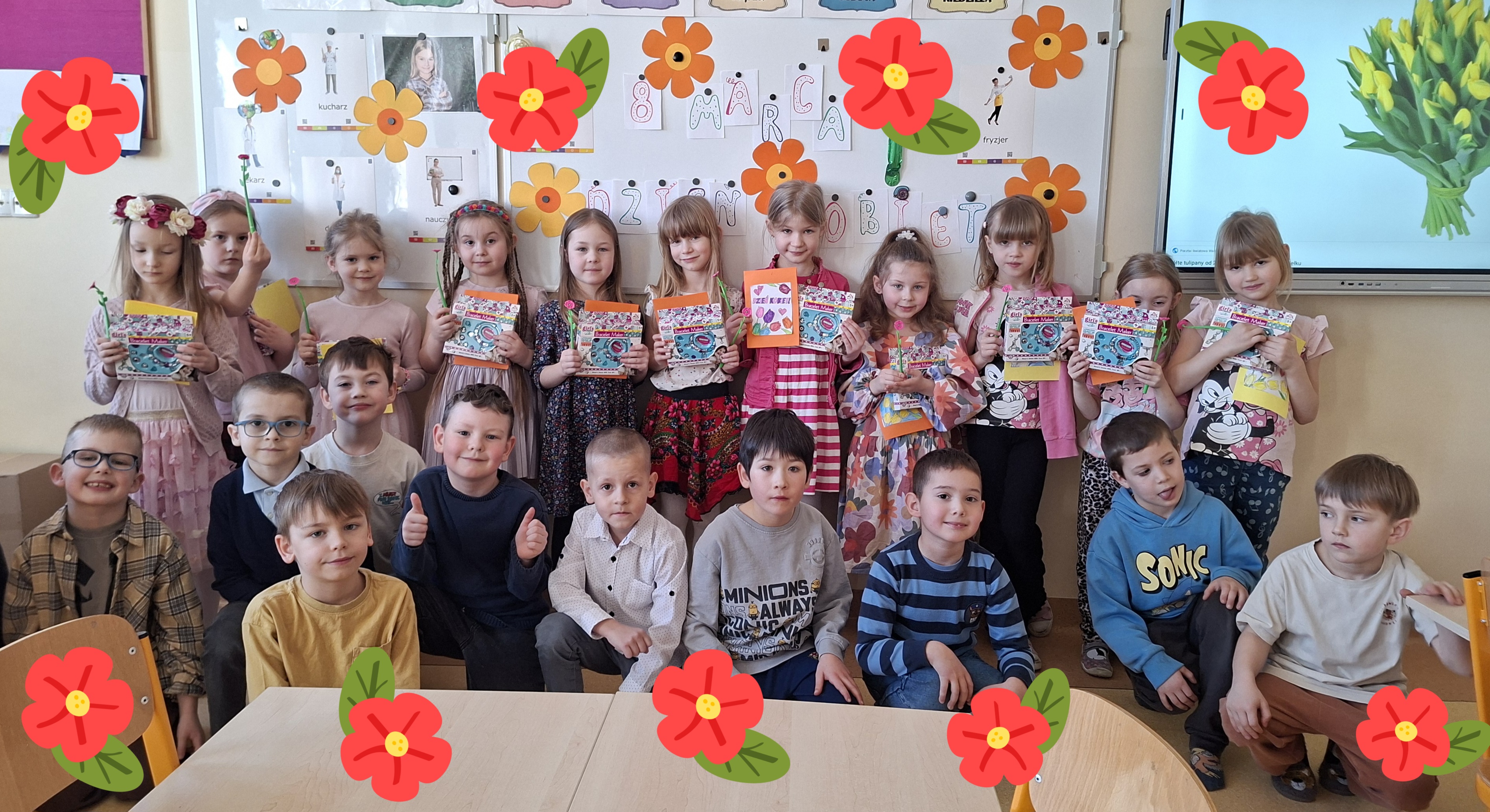 Od chłopców dla Pań małych i dużych: życzenia, laurki, upominki, dużo uśmiechu i życzliwości.Dziękujemy Wam chłopaki!