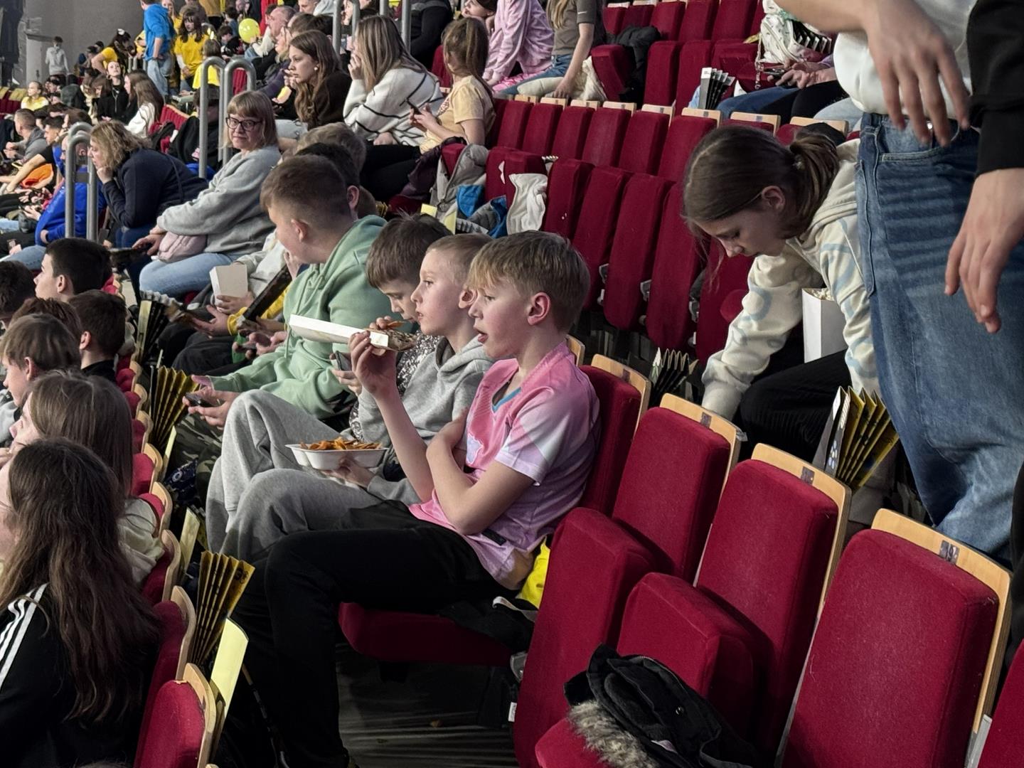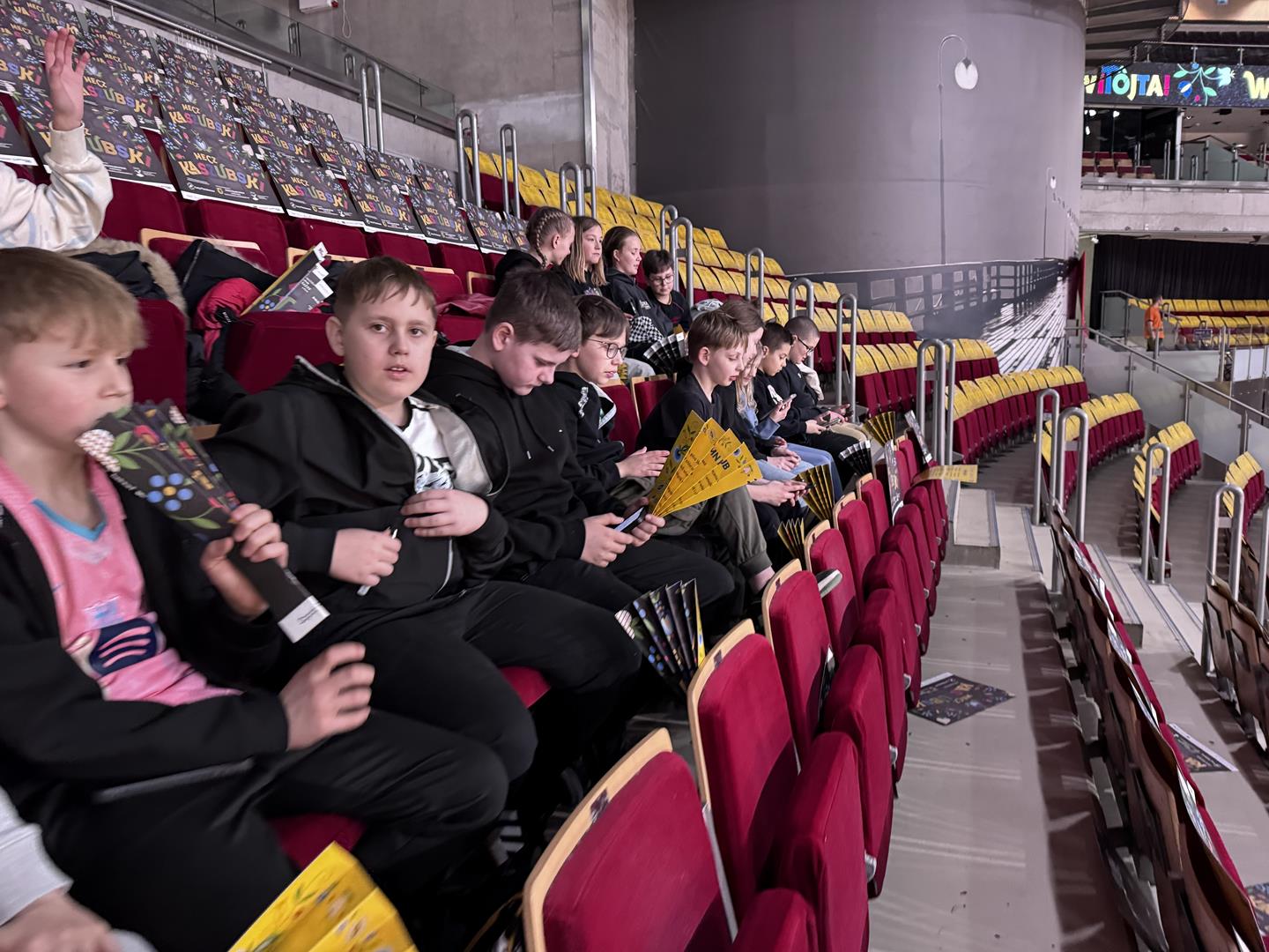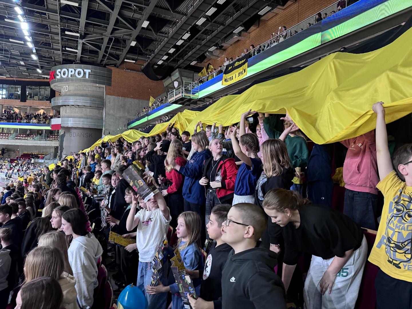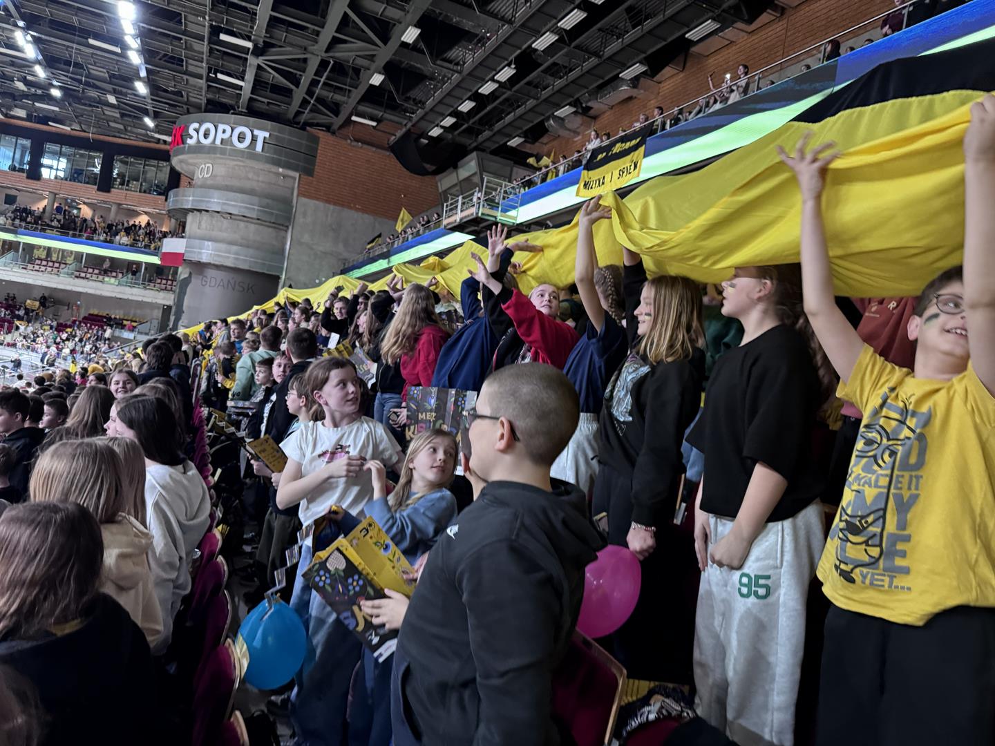 Następnym punktem był udział w Meczu Kaszubskim koszykówki na Ergo Arenie. Bilety zdobyliśmy dzięki udziałowi w konkursie plastycznym Aktywne Kaszuby dotyczącym tym razem działalności Róży Ostrowskiej. W czasie spotkania na Ergo Arenie wzięliśmy udział w przeróżnych atrakcjach przygotowanych przez organizatorów z tej okazji oraz oczywiście kibicowaliśmy zespołowi czarno-żółtych: Trefl Sopot, który niestety przegrał z MKS Dąbrowa Górnicza.